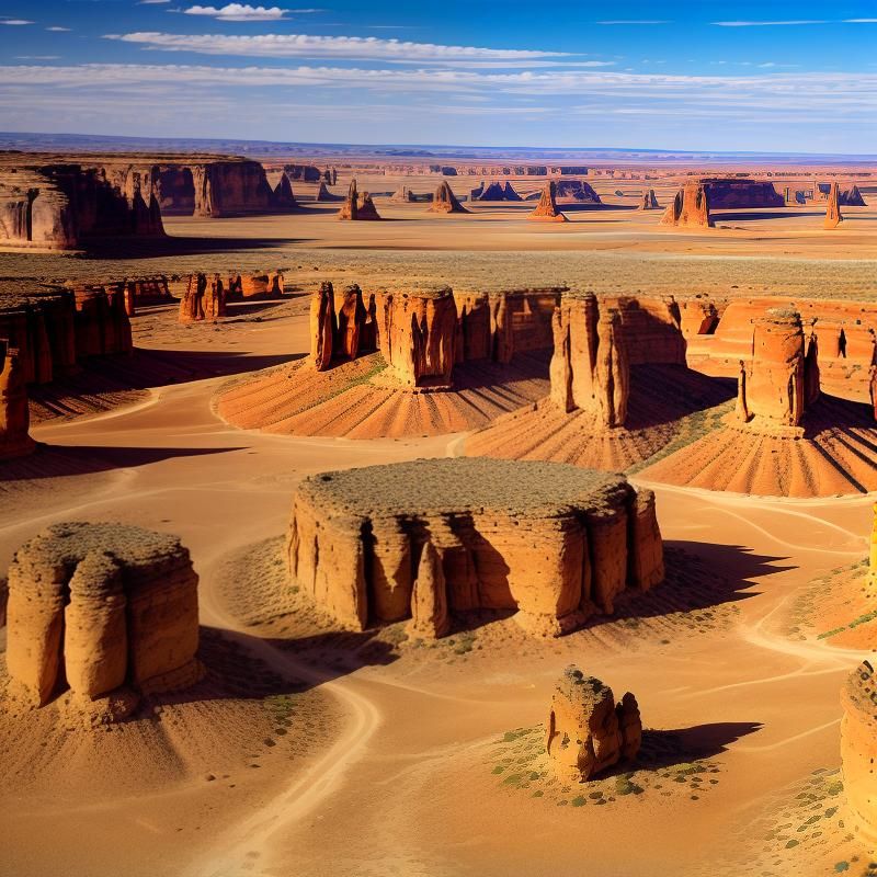 sur un plateau désertique au milieu il y avait une très grande pierre rouge plate et a cote en contrebas